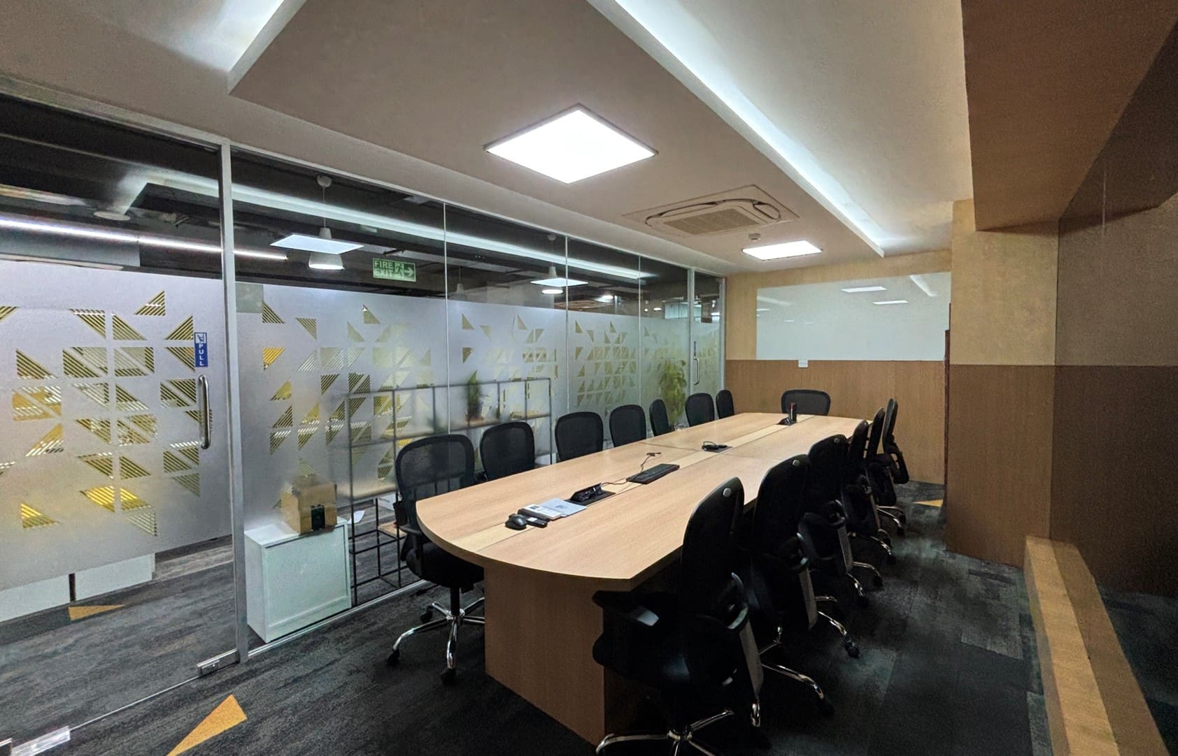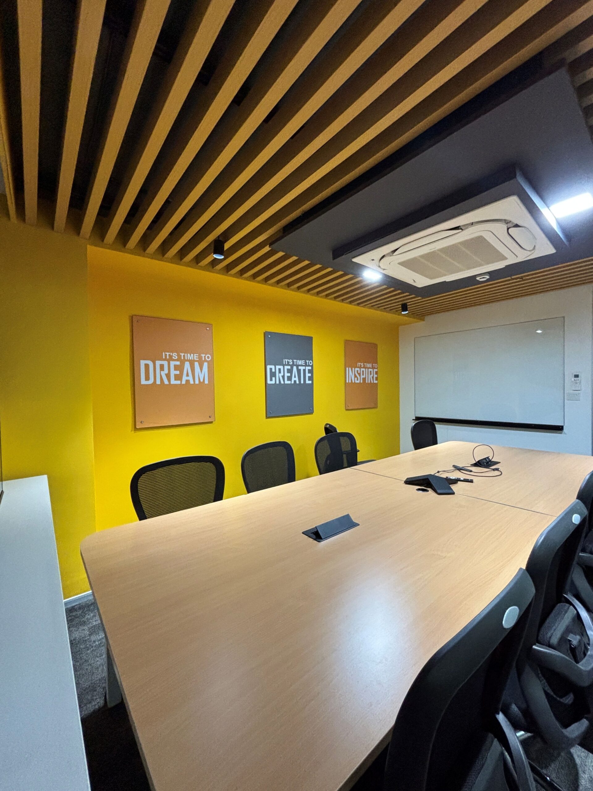 The design also includes multiple meeting spaces, such as a large conference room equipped with advanced audio-visual systems for presentations and virtual collaborations, and huddle rooms designed for quick team discussions and brainstorming sessions. These areas are acoustically treated to minimize disturbance and provide privacy for focused interactions. Additionally, breakout zones and collaborative corners have been integrated throughout the workspace to encourage informal discussions and creativity among employees.