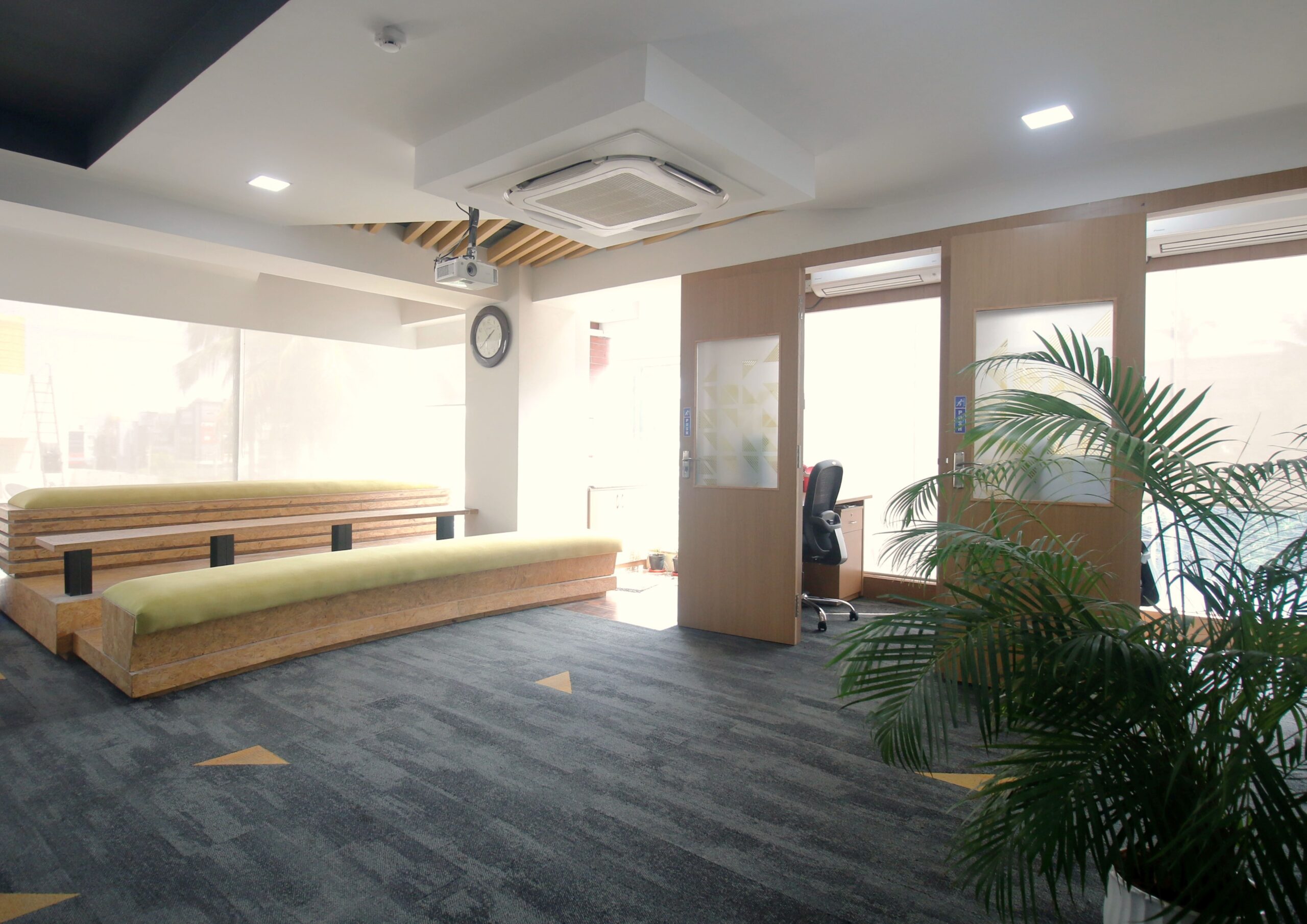 From a technical standpoint, we have incorporated updated HVAC systems to ensure optimal air quality, temperature control, and energy efficiency throughout the office. The electrical and lighting systems were carefully designed to complement the interior layout, providing efficient illumination with modern LED fixtures and automated controls. Every aspect of the mechanical and electrical planning was coordinated closely with the architectural layout to ensure seamless integration and long-term functionality.