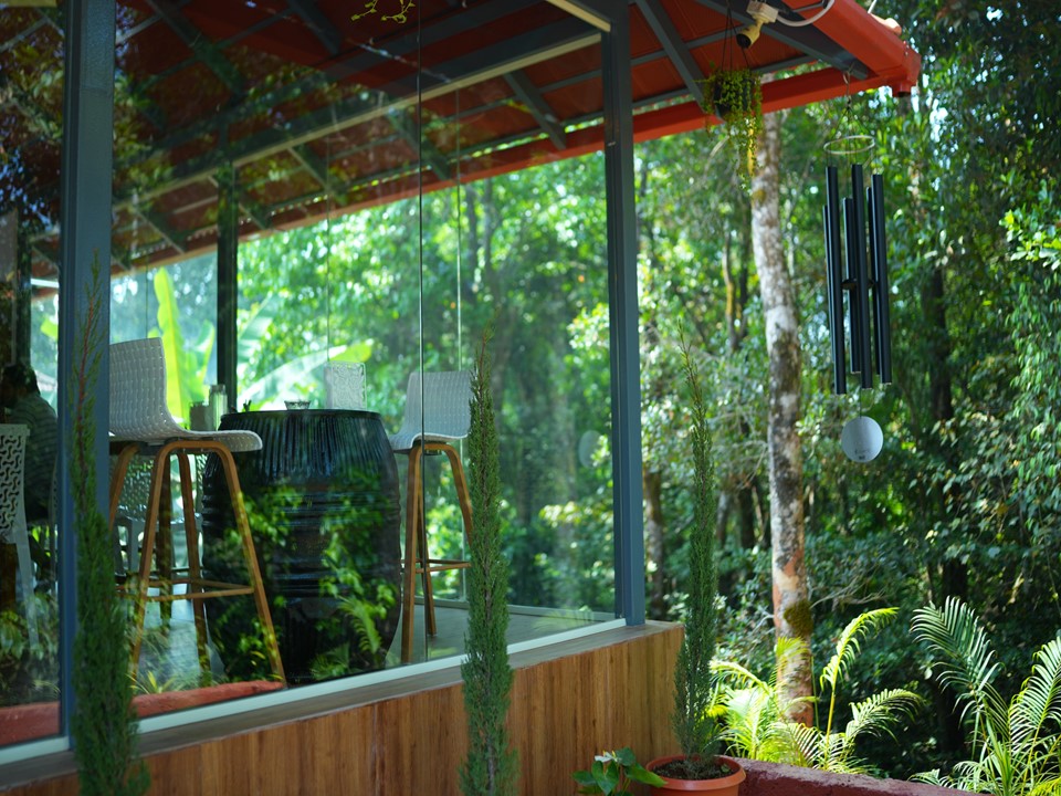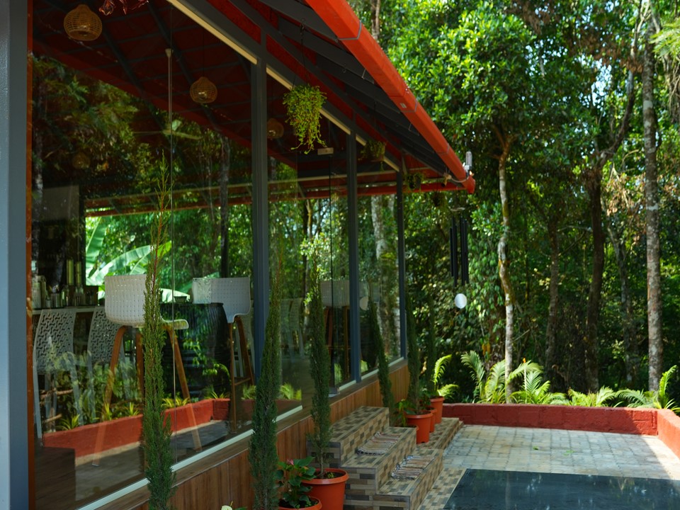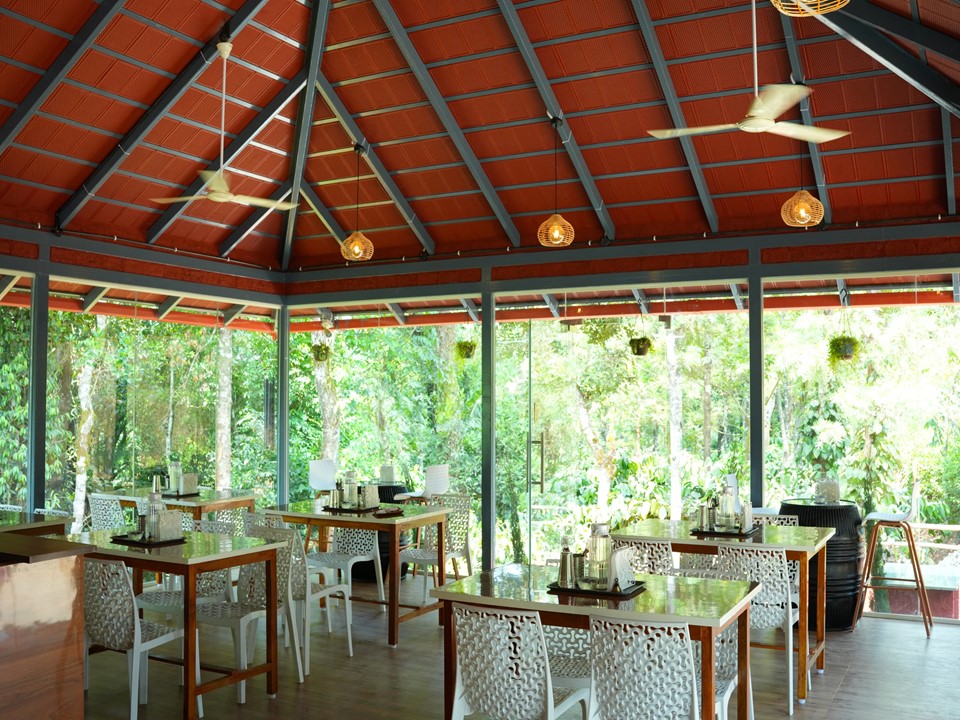 Design uses natural light as a primary ingredient. Dawn light filters through plantation canopy; golden afternoon shafts create dramatic highlights on the floor. Carefully placed clerestories and perforated screens direct light without glare. Scent is treated as part of the experience – coffee roasting, wet earth, and pepper vines are framed by open windows and the café’s own roasting nook. Acoustic treatments (soft furnishings, timber slats, and vegetated buffers) keep noise gentle so conversations, birdcalls, and the distant hum of plantation work form the soundtrack.