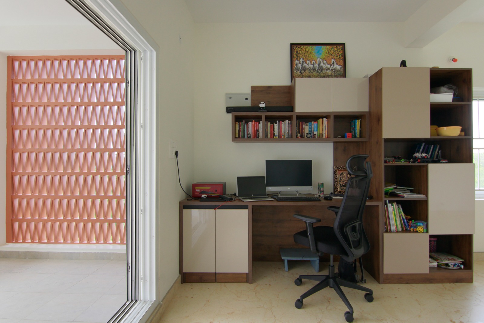 Located in a quiet, green neighbourhood, the design embraces simplicity and functionality. The material palette combines warm terracotta-toned vertical panels with clean white and grey finishes, striking a balance between traditional groundedness and modern minimalism. Generous glazing invites sunlight into the interiors while framing verdant views from every level. Thoughtful spatial planning ensures privacy, comfort, and circulation efficiency—turning the client’s aspirations for a light-filled, tranquil, and contemporary home into reality.