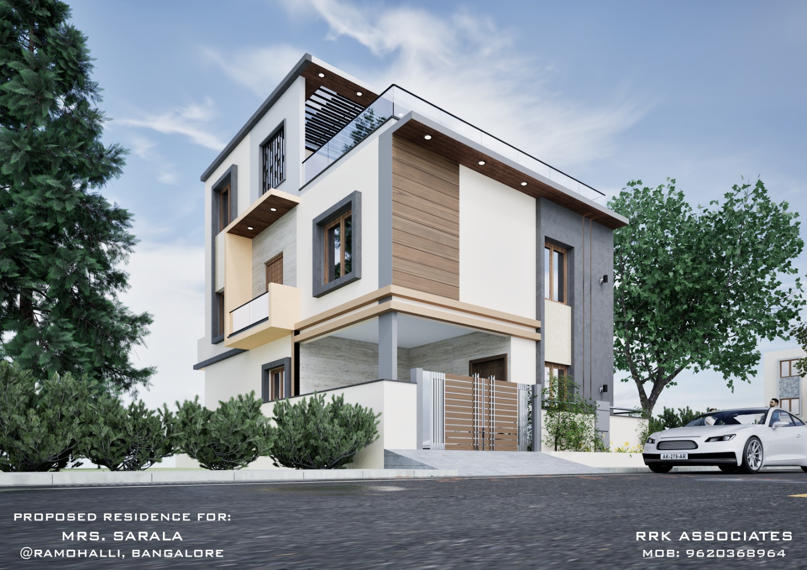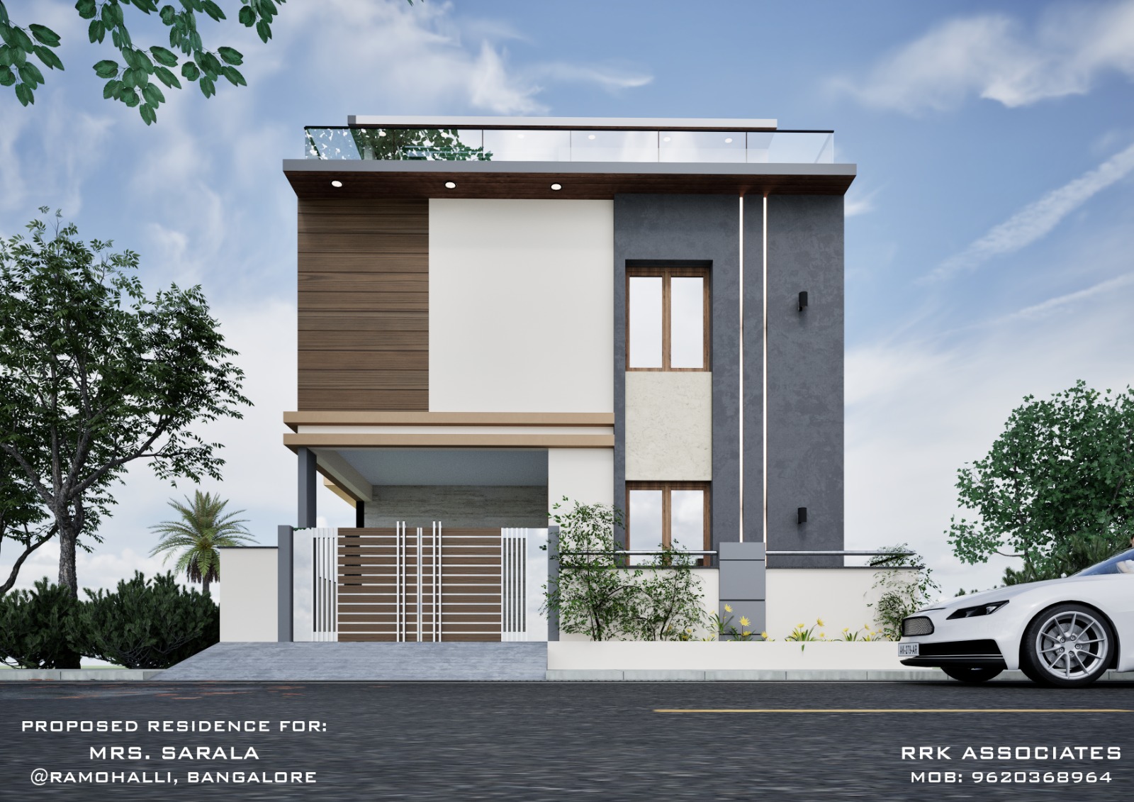 The residence for Mrs. Sarala, located at Ramohalli, Bangalore, is an ongoing G + 1.5 residential project designed to balance modern aesthetics with practical living for a contemporary Indian household. Set on a compact 1200 sft site, the design accommodates three bedrooms and a multi-purpose terrace space, ensuring comfort and adaptability for a growing family.